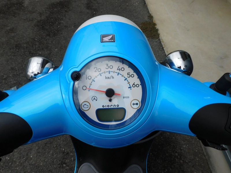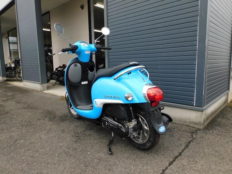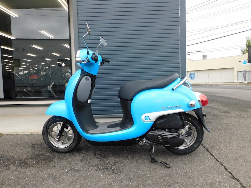 どこかで見たことあるような昔懐かしいクラシックなデザインで若年層に人気の50ccスクーター ホンダ ジョルノ(Giorno) ライトブルーの中古車が入荷しました。