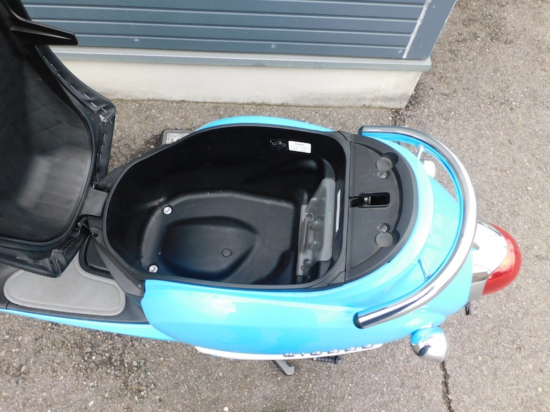 ヘルメットを入れることもできる大きな収納スペースがあります。(一部のヘルメットは収納できませんのでご注意ください。)