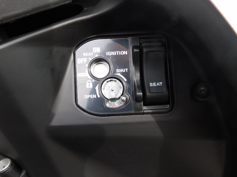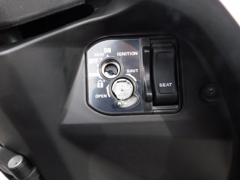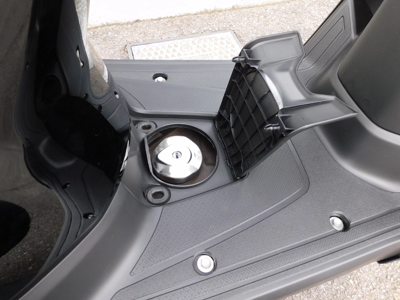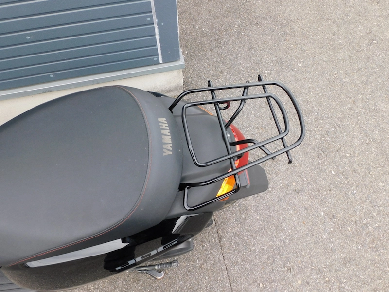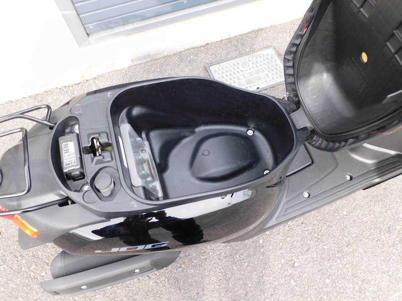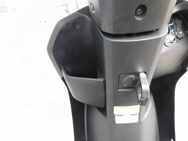 シート下収納は容量約20リットルの収納スペースがあります。ハンドル下にはフロントポケット、カバンホルダーがあり、シート後方にはスタンドグリップ付のリアキャリアが付いてます。シート下収納スペースはフルフェイスヘルメットが入るまでの大きさは無いので、ヘルメットを収納したい方にはリアキャリアにオプション(有料)のトップボックスを取付けることをお勧めします。