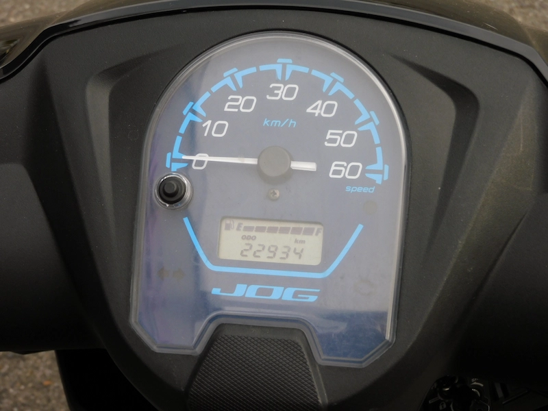 アクセルを回すだけで走行するオートマチックタイプのオートバイ ヤマハ JOG ブラック の中古車が入荷しました。