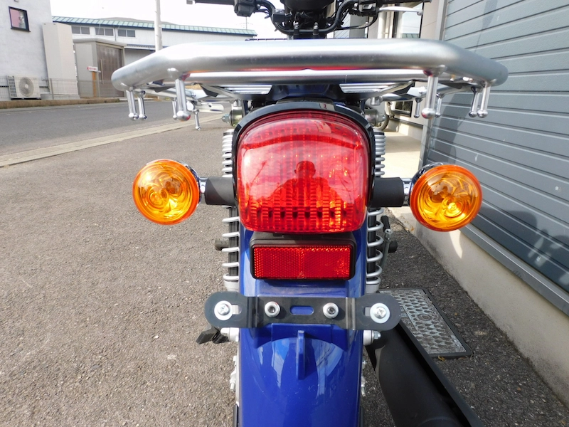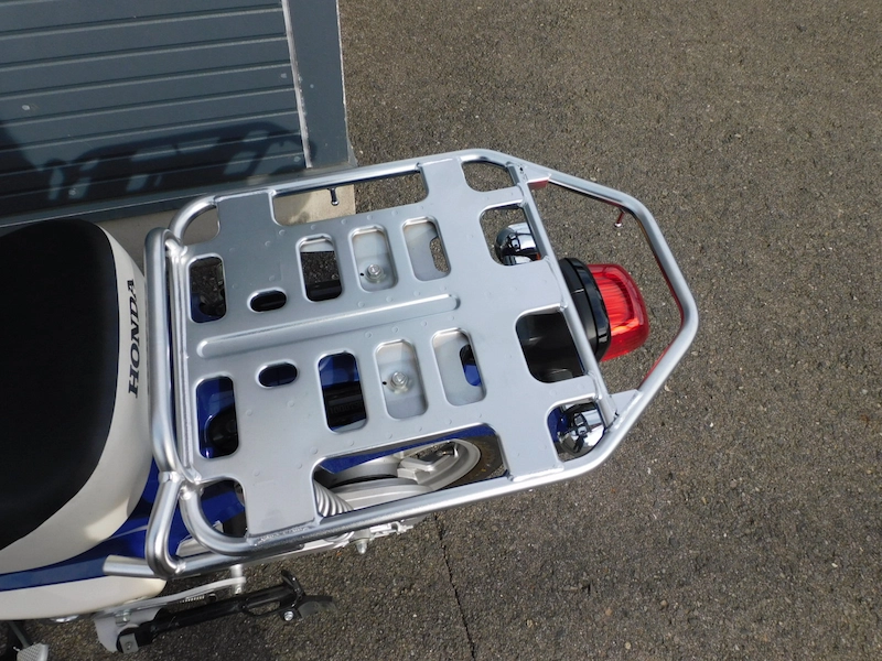 大型リアキャリアは新聞が載せられるサイズになっているのでかなり大きいのが特徴です。キャンプツーリングで大量の荷物を載せる事も可能な心強いキャリアです。