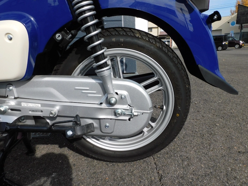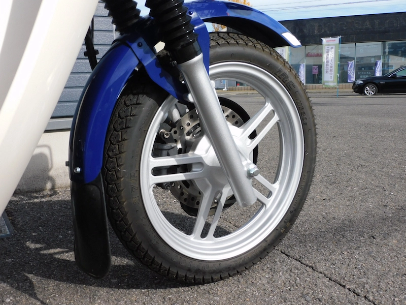 前後ホイールは14インチキャストホイールにチューブレスタイヤが装着されてます。