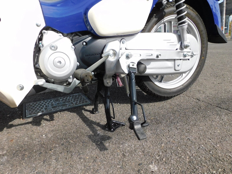 普段の乗り降りはサイドスタンドを利用し、メンテナンス時や荷物積載作業はセンタースタンドを利用するなど、使い分けをする事ができます。