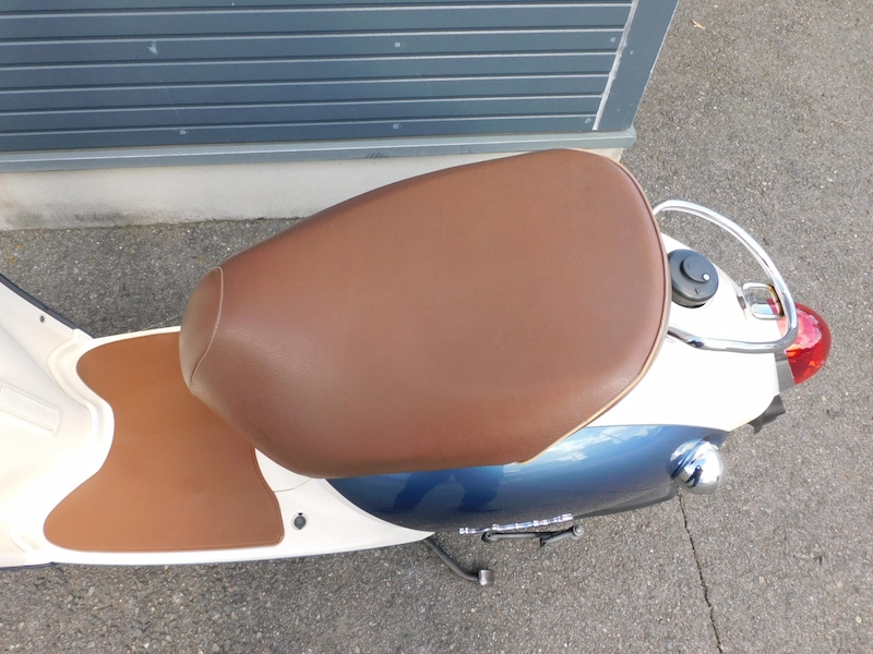 丸形のヘッドライト、ウィンカー、クロームメッキミラーなど丸みを帯びたレトロなデザインで人気のスクーターです。
