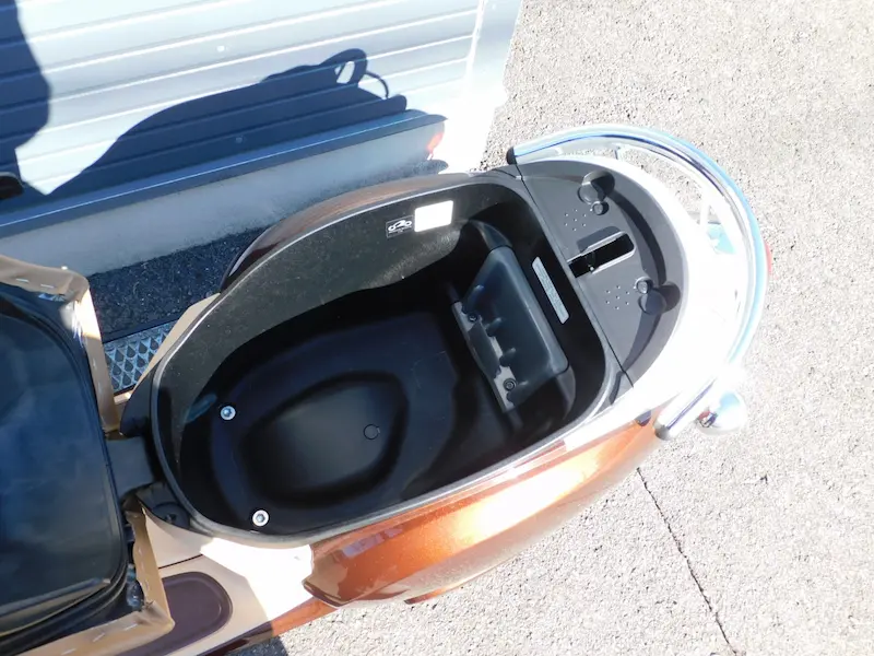 毎日乗られる方でしたら常備したいレインスーツを入れたり、スーパーなどでお買い物をしたお買い物袋や手荷物などを入れる事も可能です。ただし、シートボックスの下にはエンジンがあります、シートボックス内はエンジンの熱で暖かくなりますので、生もの等は入れない方が良いと思います。