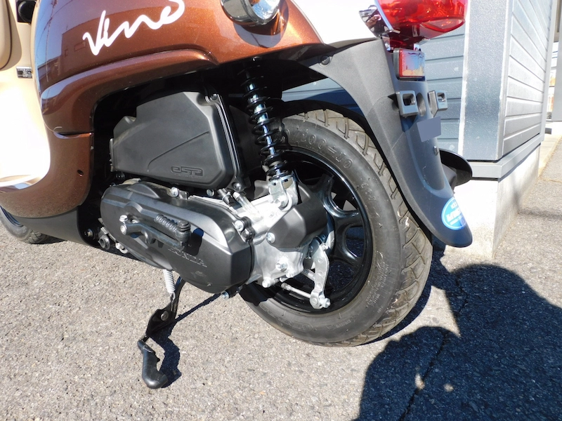 エンジンは水冷単気筒49ccエンジンでエンジン音が静かで燃費が良いのが特徴です。エンジン始動のセルモーターはブラシレスモーターが採用されておりエンジン始動時のセルモーター音も静かです。