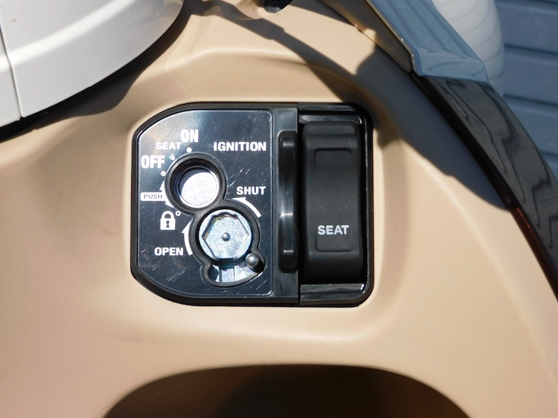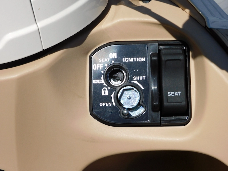 シートを開けるときは、キーを SEAT の位置に合わせメインキー隣のシーソータイプのボタンを下側に押して頂ければ開きます。