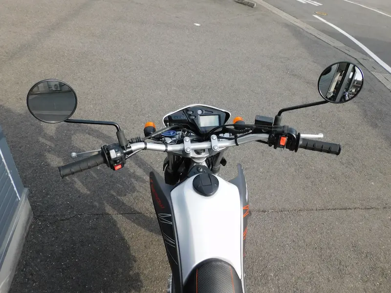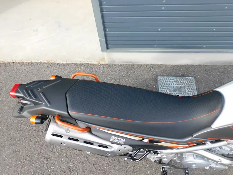 車体色はグレーとオレンジでタンクシュラウドのデザインが左右非対称なのが特徴です。ホイールリムとハンドルスタンディング、シートステッチがオレンジになってます。