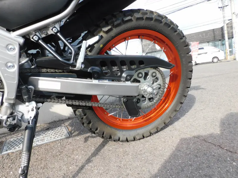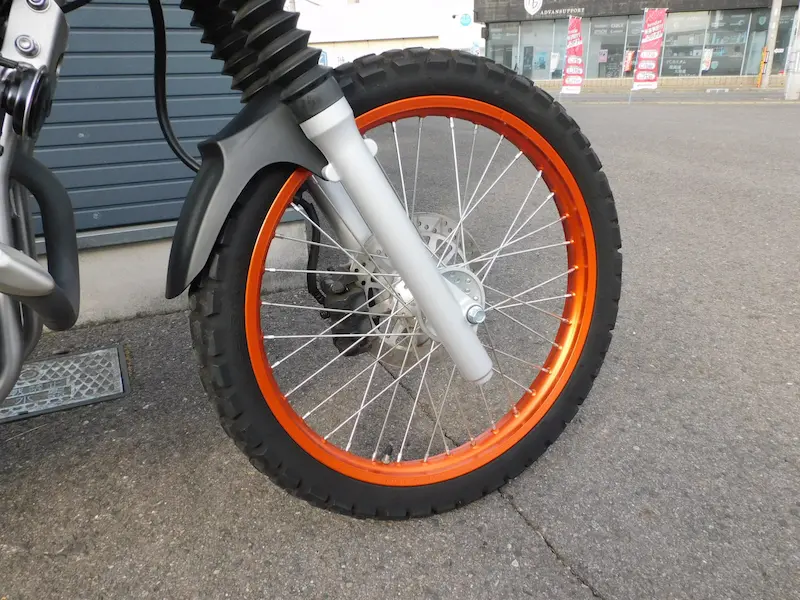 前後のホイールリムはオレンジ色のカラーリムが採用されてます。